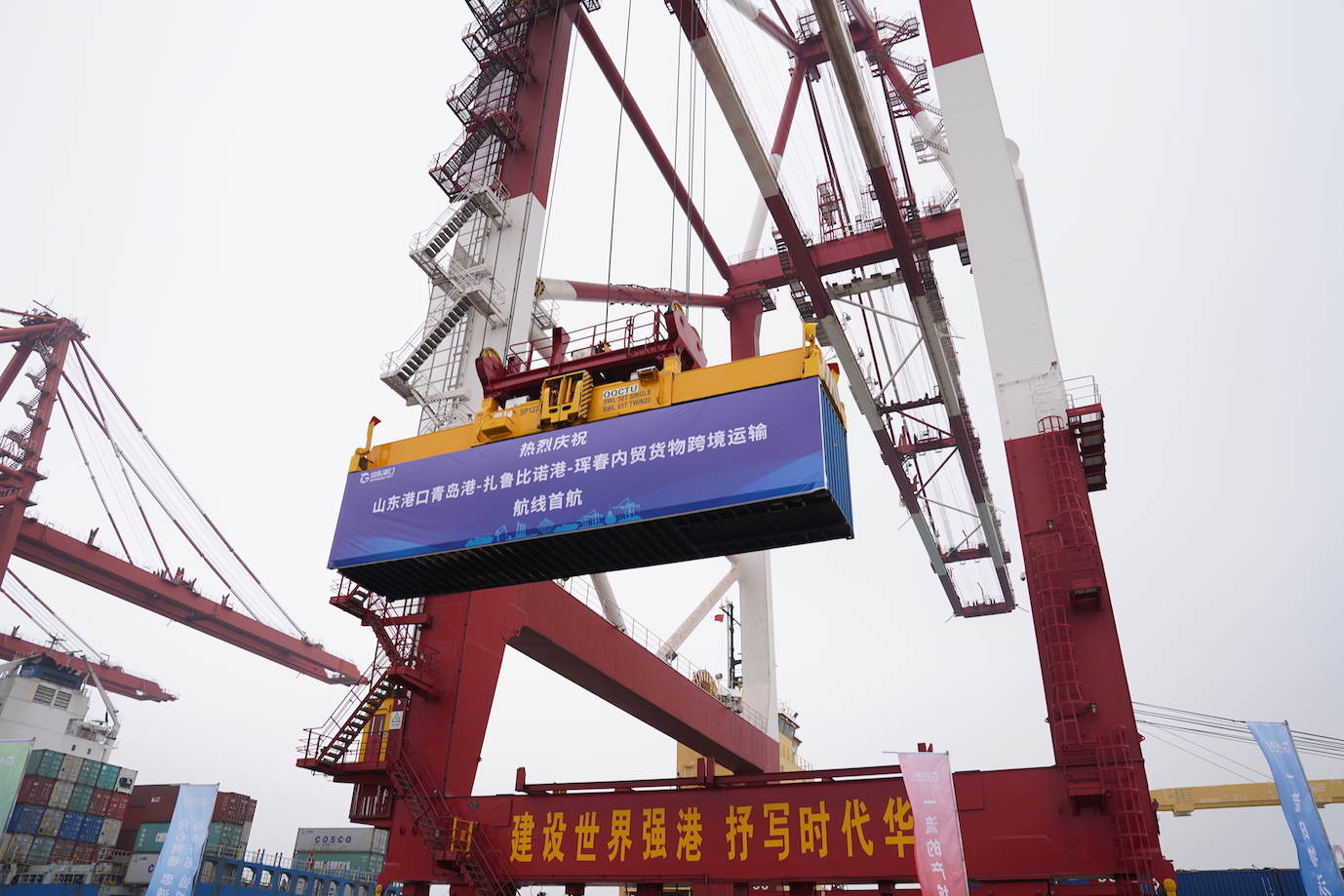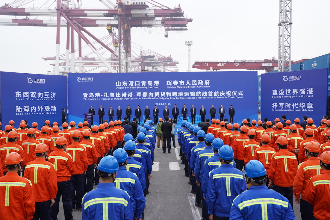 山東省港口集團自去年組建以來,堅持“東西雙向互濟、陸海內外聯動”,海向增航線、擴艙容、拓中轉,陸向開班列、建陸港,拓貨源。山東港口積極對接吉林省延邊自治州政府、琿春市航務局、琿春鴻利海運物流等有關單位,推動“青島港-扎魯比諾港-琿春”內貿貨物跨境運輸項目落地。2020年1月7日,海關總署正式批覆增加青島港為吉林省內貿貨物跨境運輸目的地港。