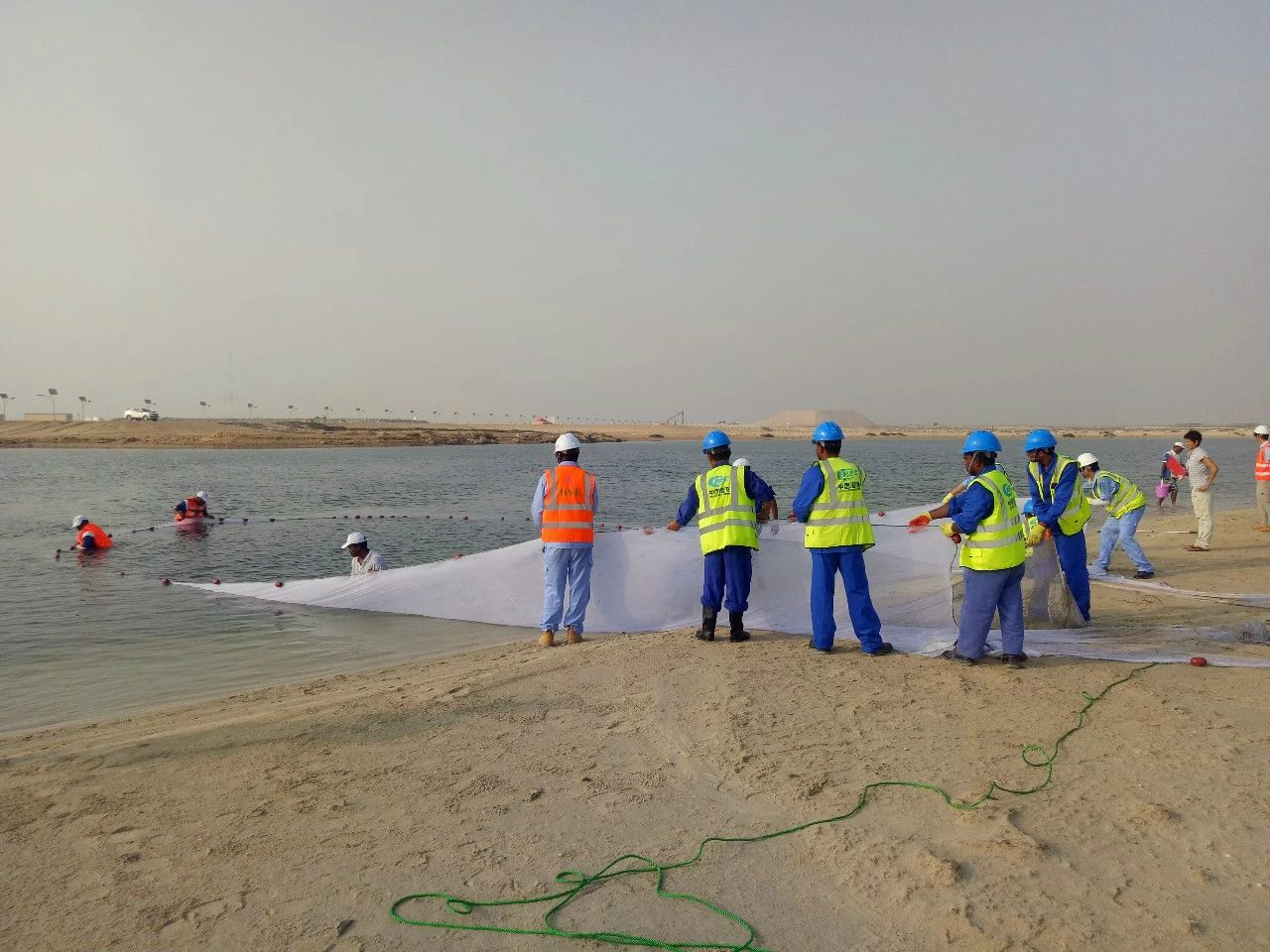該項目布置經過特殊設計的十餘公里防淤簾