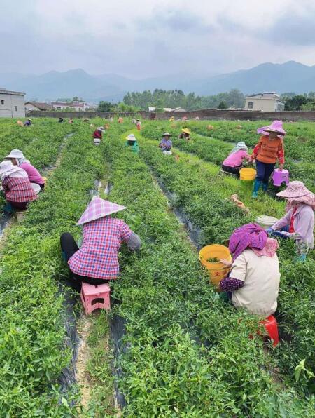 「2019年,我了解到余干椒和海花紅經濟效益好、種植要求高,而鶴湖村的氣候、地勢、土壤耕性都符合種植要求,當時我就決心將這兩種辣椒帶到鶴湖村。」鶴湖村黨委第一書記趙漢新告訴記者,辣椒種植所需的水圳等配套設施則由對口幫扶單位南沙橫瀝鎮出資修建。辣椒主要銷往江西,珠三角等地,市場前景廣闊。種植、施肥和採摘等各個環節均需大量的人工,吸納了一大批本村和附近村民進行短期務工生產,大大增加了村民們的收入。