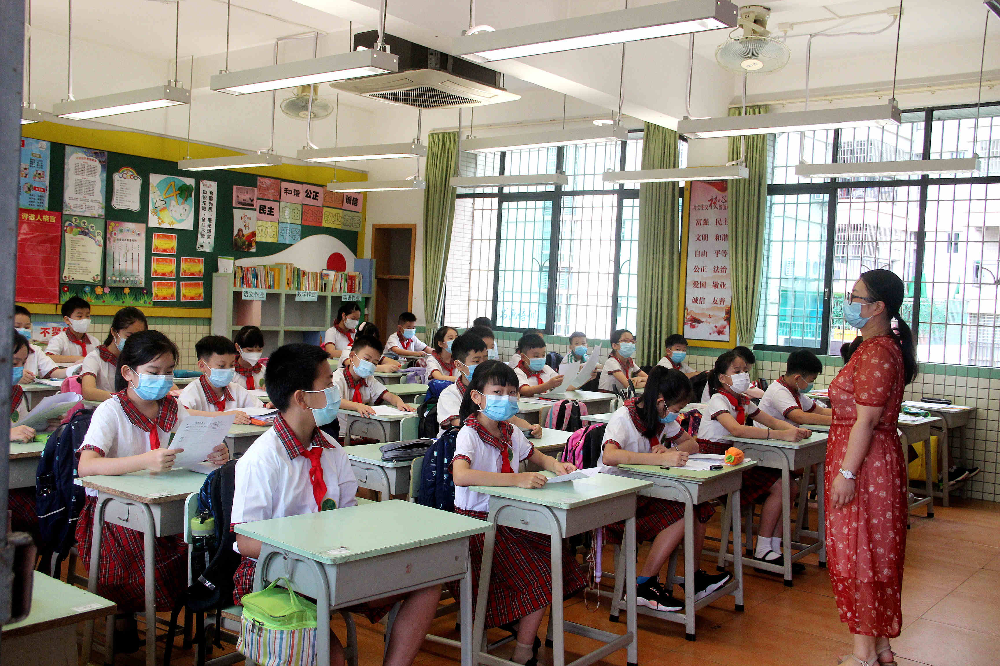 在原本就要放暑假的時間,終於結束超長寒假迎來開學,學生們是既開心又緊張。「開心的是終於可以回校上課了,緊張的是開學第二節課就要進行課程檢驗。」四年級的李同學說,在家那麼久,雖然也通過網絡上課,但是學習效果始終沒有在學校的好,不知會不會退步了很多。