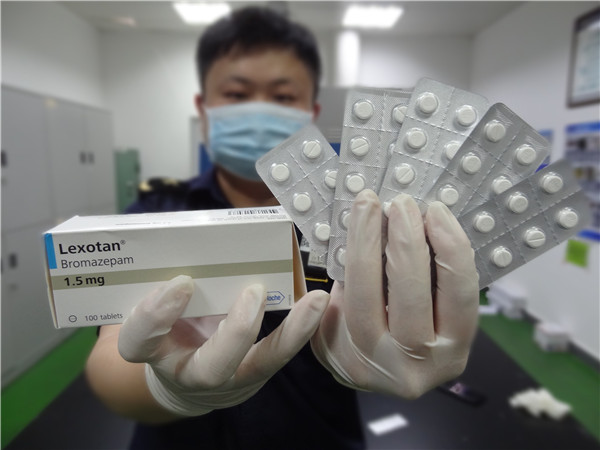廣州海關在郵遞渠道查獲精神藥品溴西泮(王嘉媚攝)
