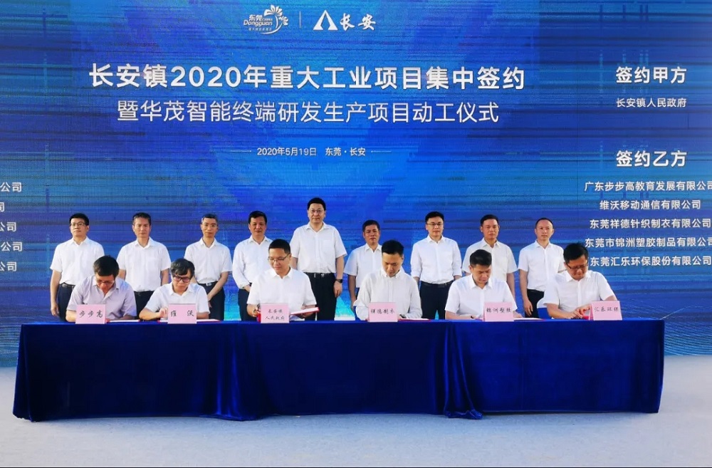 【香港商報訊】記者 冷運軍 報導:19日上午,廣東省東莞市長安鎮舉行2020年重大工業項目集中籤約暨華茂智能終端研發生產項目動工儀式,現場簽約及開工項目共18個,其中新開工項目4個,新簽約項目14個,計劃總用地規模約1400畝,總投資約113億元。建成後預計產值達204億元,可新增稅收15億元。