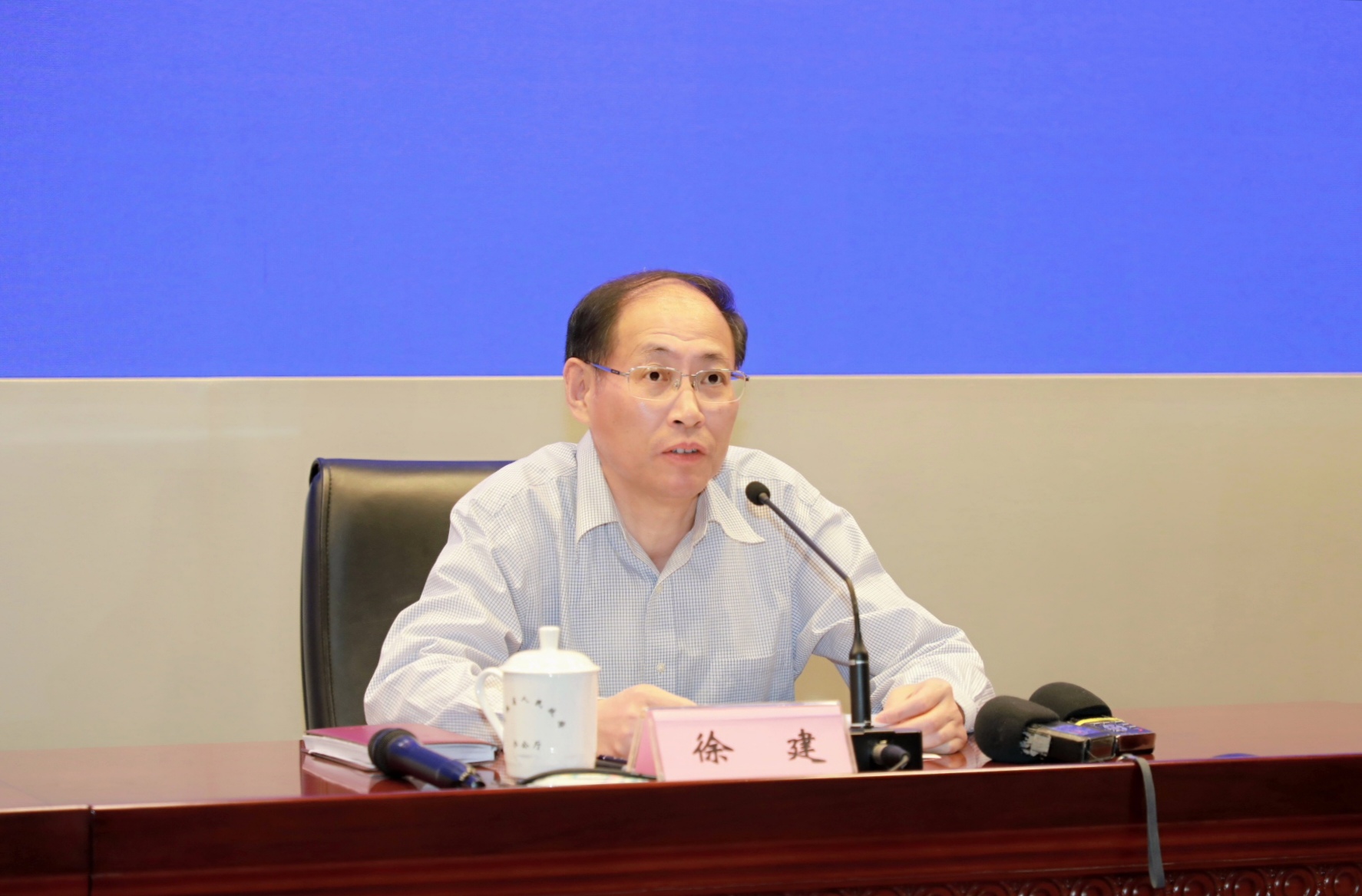 安徽省人力資源社會保障廳廳長長徐建介紹相關情況(孫軍/攝)