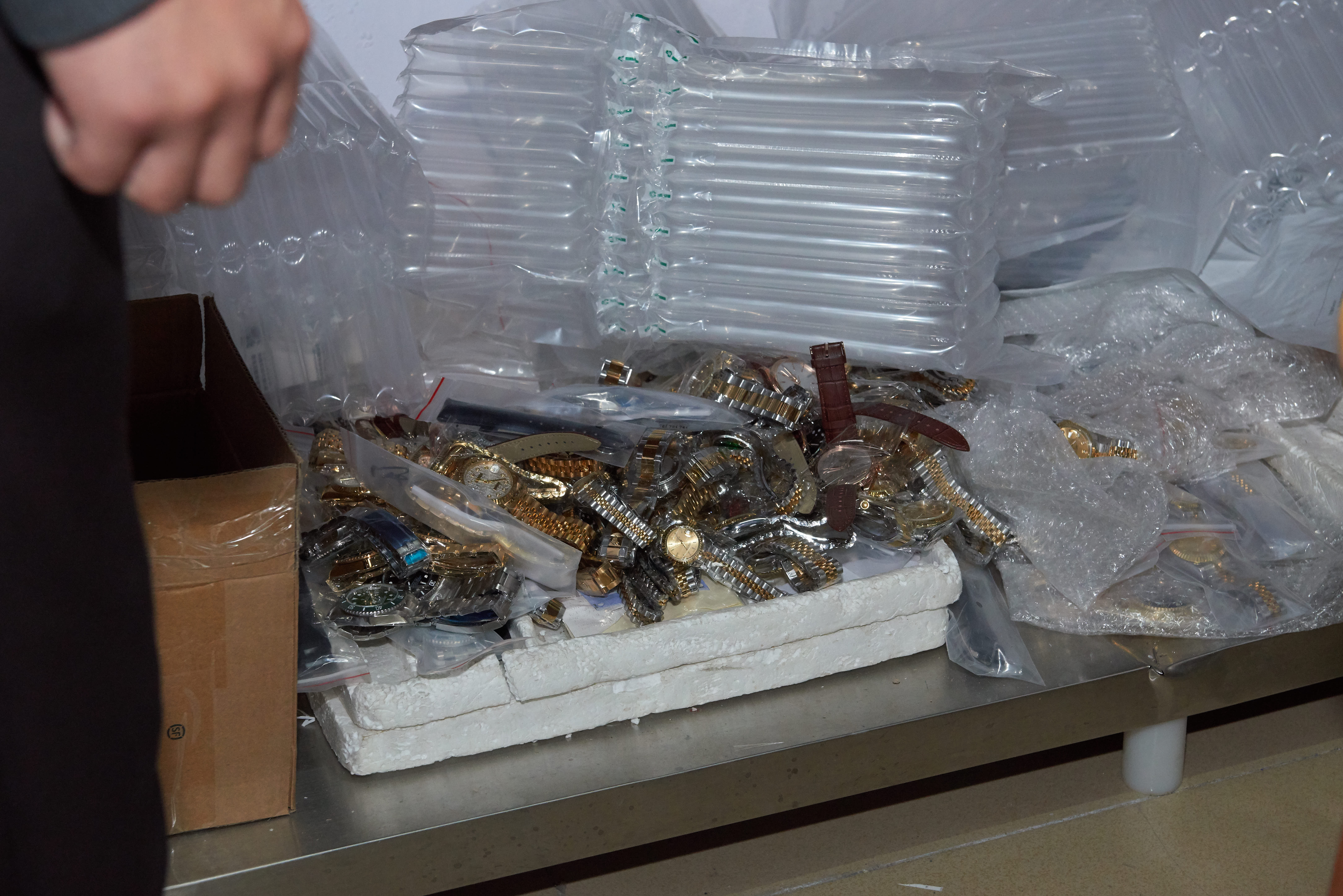 「颶風42號」特大制售假冒知名品牌手錶專案-警方在售假窩點內查獲的涉案物品(攝影:羅家文)