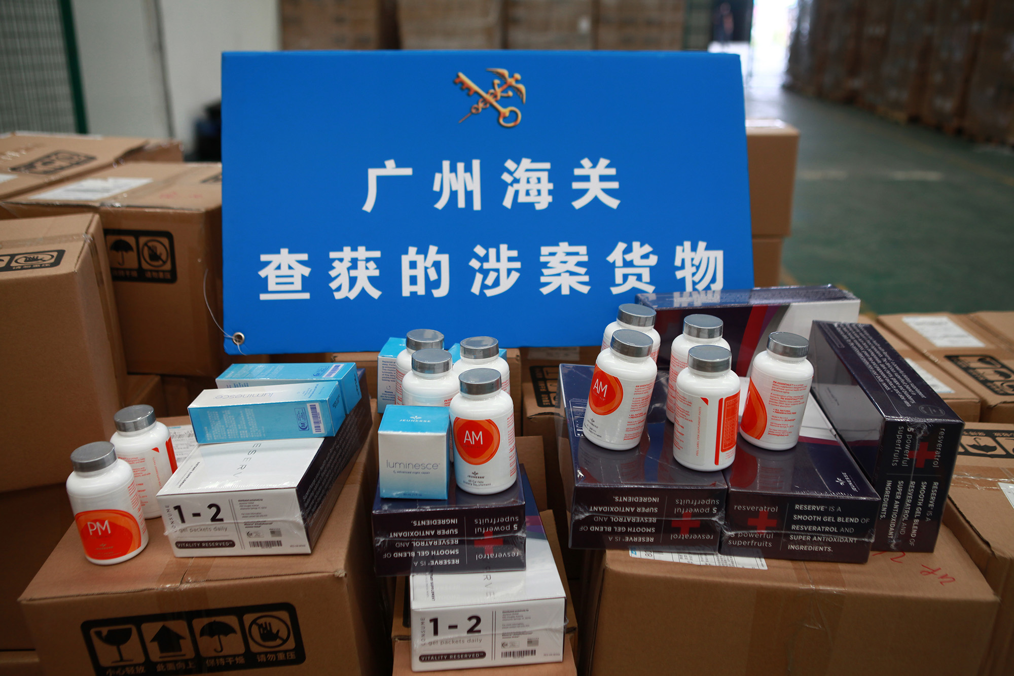 5月19日凌晨,廣州海關緝私局在廣州、肇慶、河源等地統一開展集中收網行動,抓獲犯罪嫌疑人20名,現場查扣涉嫌走私進口的保健品一批。