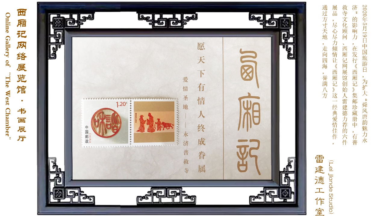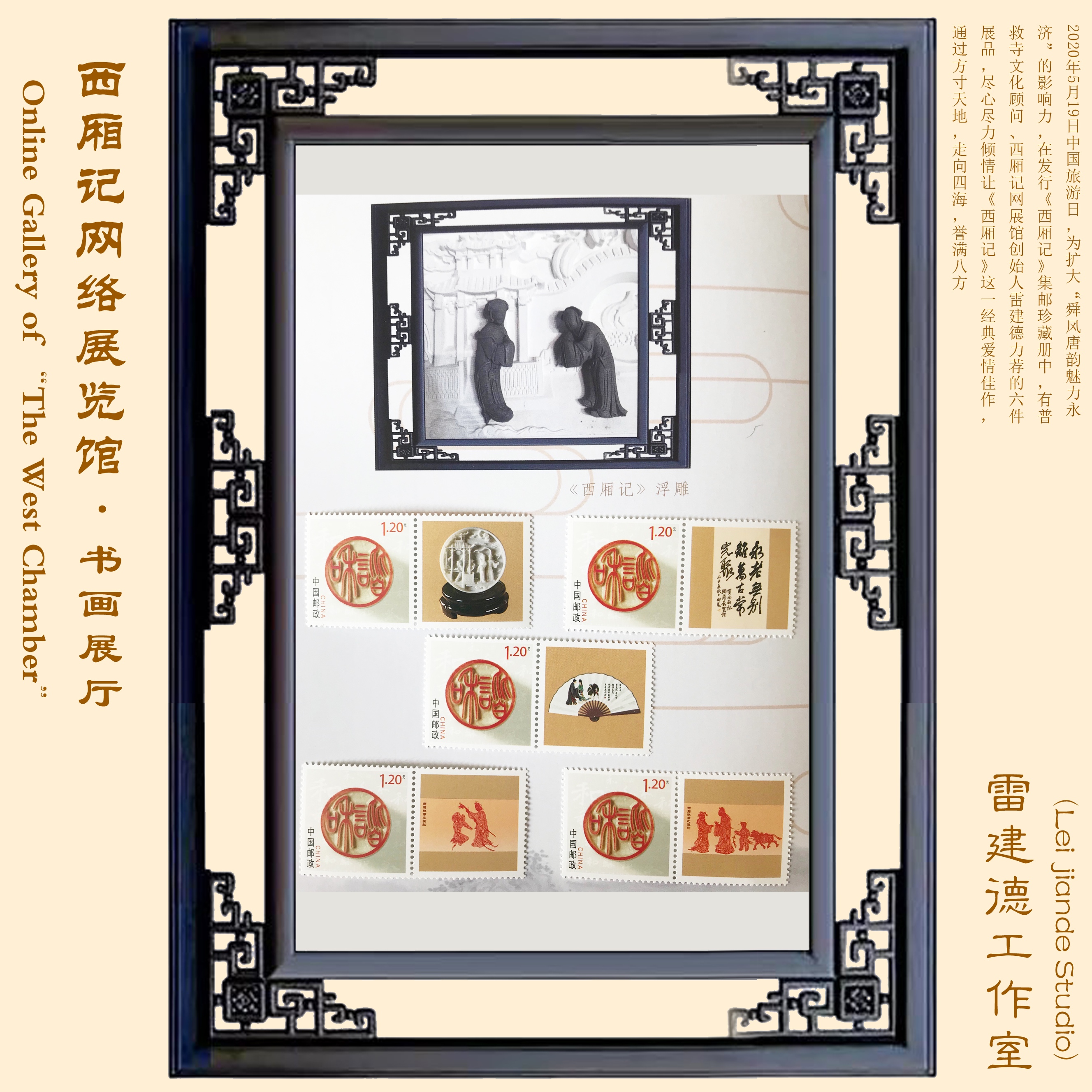 雷建德工作室“西廂記網絡展覽館”一組六件展品,曾以中法兩種文字入選《法國郵票印象——中國殿堂級藝術家篇章》,讓富有中國特色的西廂文化登上了法國郵票,此次也同樣有六件展品特別選入中國郵票,系從雷建德搜集的當代珍貴展品中擇優而選。