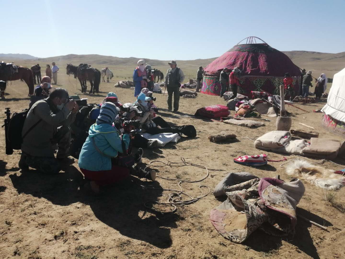 搭建氈房現場,吸引眾多攝影愛好者 張麗摄