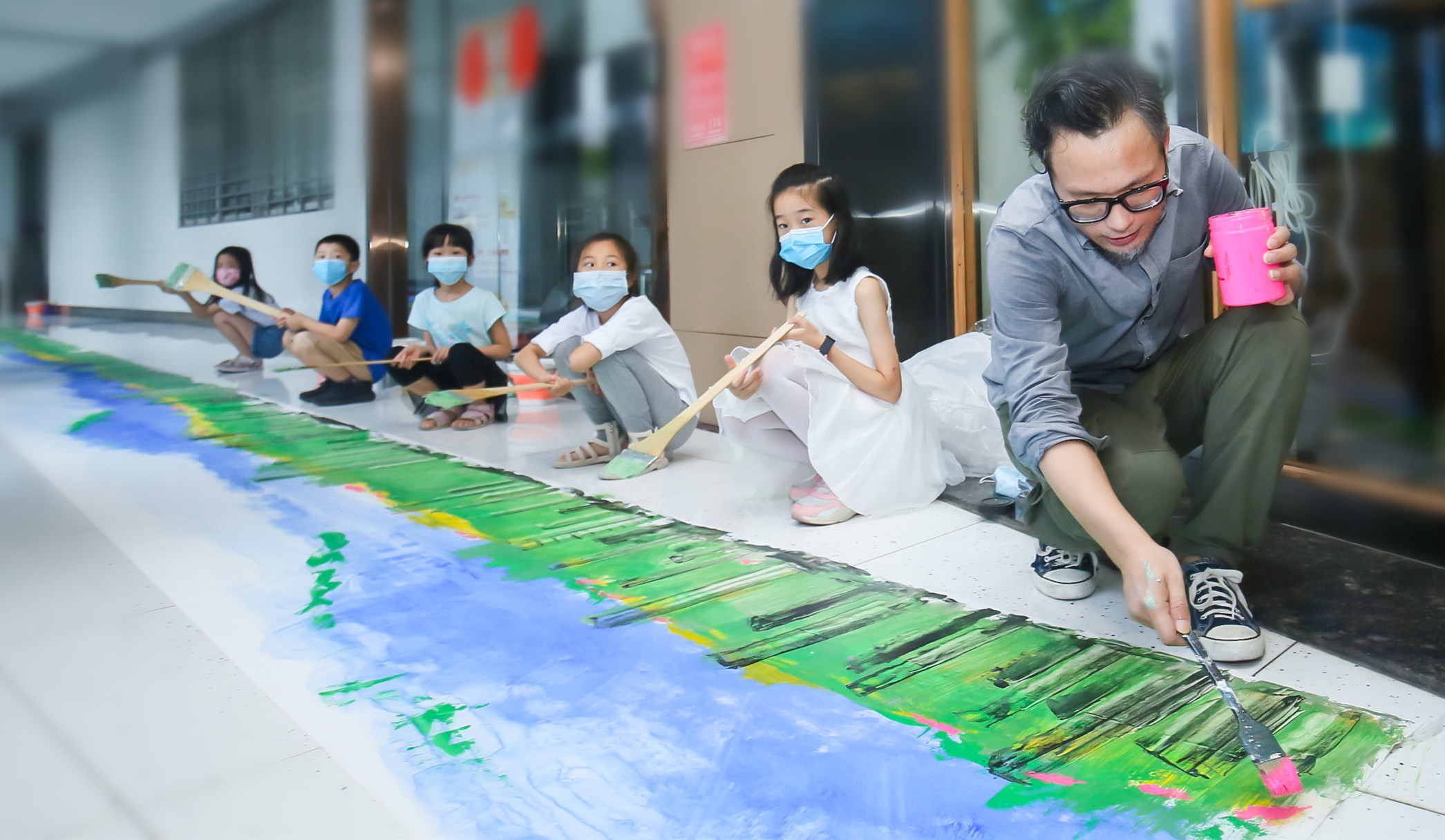 尹小龍說:「作為一名來了深圳15年的藝術人,我深感自豪,我熱愛這個城市的一草一木,每座山,每一片海,每一個湖泊和每一條河流。」 他帶領孩子們,拿起手中的畫筆,用色彩表達對這個城市的無限熱愛。 「所以我和孩子們創作了這個幅40米長的畫卷,孩子在這個六一兒童節,用畫筆為深圳40歲生日獻禮! 」