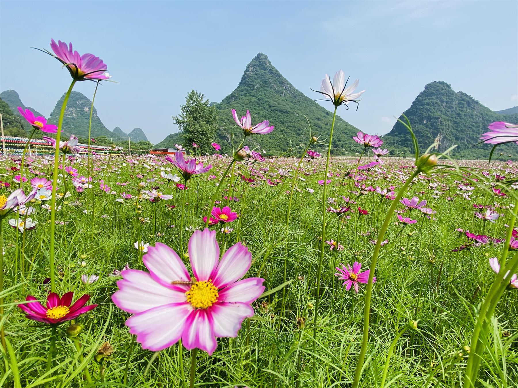 【香港商報網訊】日前,廣西桂林市七星區馬家坊村裡一片花海向陽盛開,百畝萬壽菊、格桑花鑲嵌在青山綠樹間,短短一周,吸引了上萬名市民群眾前來賞花遊玩,有效帶動了當地農村旅遊經濟的發展。