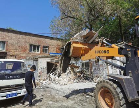 【香港商報網訊】為進一步加強新區平房片區違法建設拆除工作,營造整潔、有序的市容環境秩序,日前,平房區城管執法局依法對平房區洪鏡街6號黑龍江省冶金建設總公司壓力容器廠院內的多處違章建築物實施強制拆除行動。