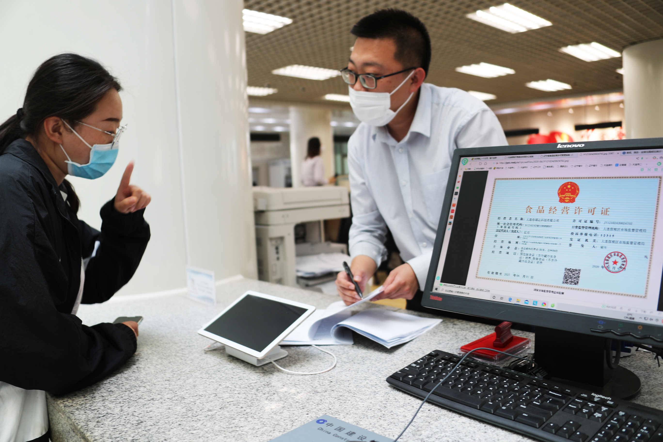 自貿片領導向記者介紹了幾個案例:不久前,閻先生到大連自貿片區行政服務大廳辦理企業登記手續,當他在工作人員指導下使用企業登記確認制平台,僅通過10多分鐘簡單的操作,便一鍵生成設立登記需要的材料,從操作系統到領取執照,整個過程用時不到半小時,令他倍感驚訝。還有,中交二航(大連)建設發展有限責任公司是一家由多個股東共同投資設立的企業,因股東數量較多且分散各地,受新冠疫情影響,公司註冊所需的文件無法及時從各地寄來,大連自貿片區綜合服務大廳窗口工作人員了解到企業的情況後,立即啟動「容缺受理」「承諾准入」機制,並對企業註冊及補缺注意事項進行專項輔導,經辦人按要求籤署承諾書後,經過十多分鐘等待,營業執照便交到經辦人手中。再有,山之川(大連)國際貿易有限公司是一家以跨境電商食品銷售為主業的貿易公司,在自貿大廳提交食品經營許可證申請材料,大廳工作人員依據大連自貿片區發佈《符合性認證服務管理暫行規定》,在經辦人簽署行政許可告知承諾書後,先行發證,事後認定,僅用時1小時,就為企業辦理完成食品經營許可證。
