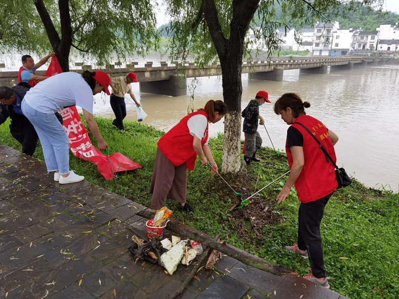 【香港商報網訊】6月4日上午,在“六五世界環境日”到來之際,安徽黃山市新時代文明實踐中心聯合休寧縣新時代文明實踐中心及休寧縣海陽鎮、流口鎮、鶴城鄉等新安江沿線8個鄉鎮新時代文明所和15個行政村新時代文明實踐站,在美麗的新安江畔舉辦“保護新安江,我是行動者”新時代文明實踐活動。來自黃山市志願服務聯合會、黃山市生態環保局、休寧縣文明辦、休寧縣生態環保局和海陽鎮等8個鄉鎮的650名志願者,撿拾江邊垃圾,向村民發放宣傳單頁,以實際行動爭做“保護母親河”的引領者、踐行者、捍衛者,為打造新安江山清水秀優美生態環境貢獻力量。
