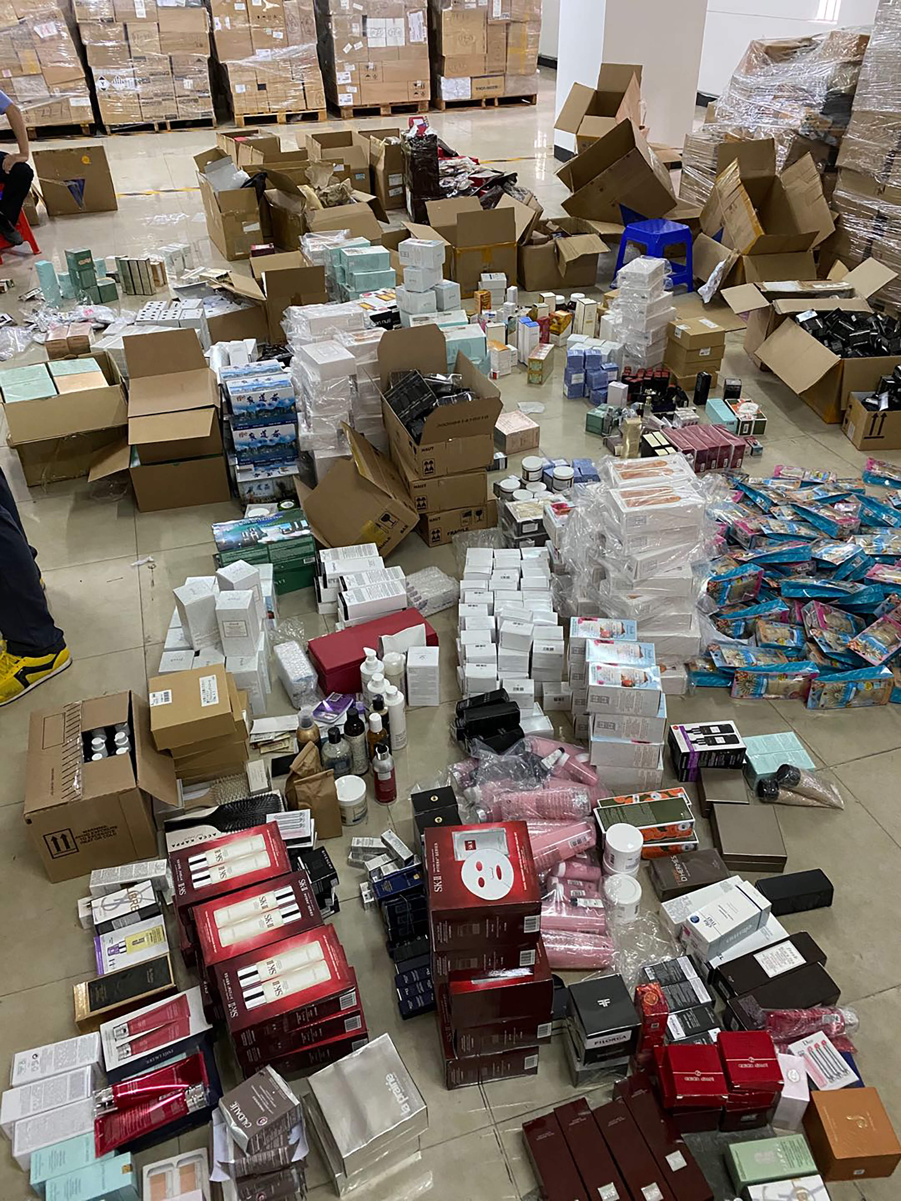 廣州海關緝私警察查獲的化妝品等貨物