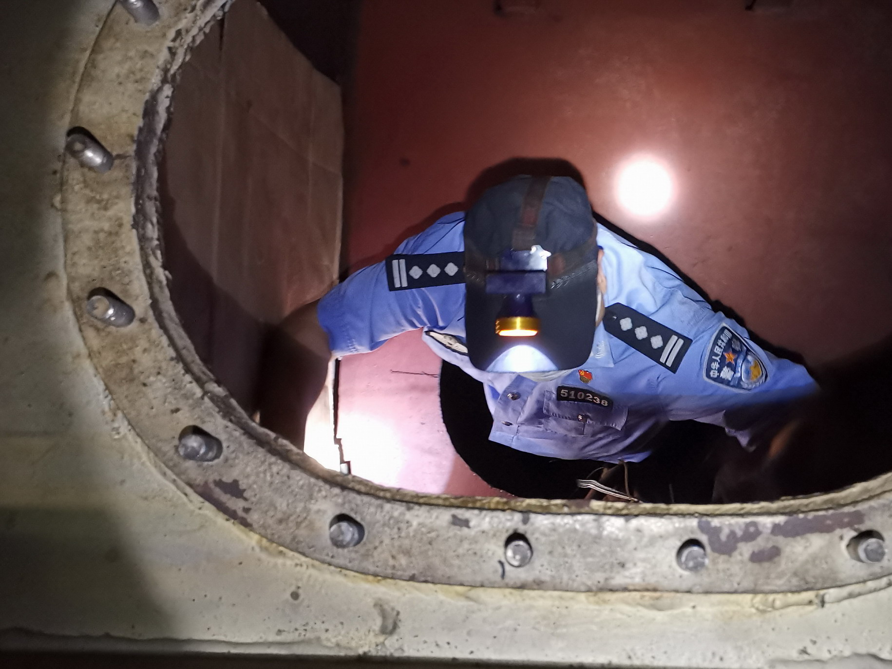 海關緝私警察深入油艙搜查涉案貨物