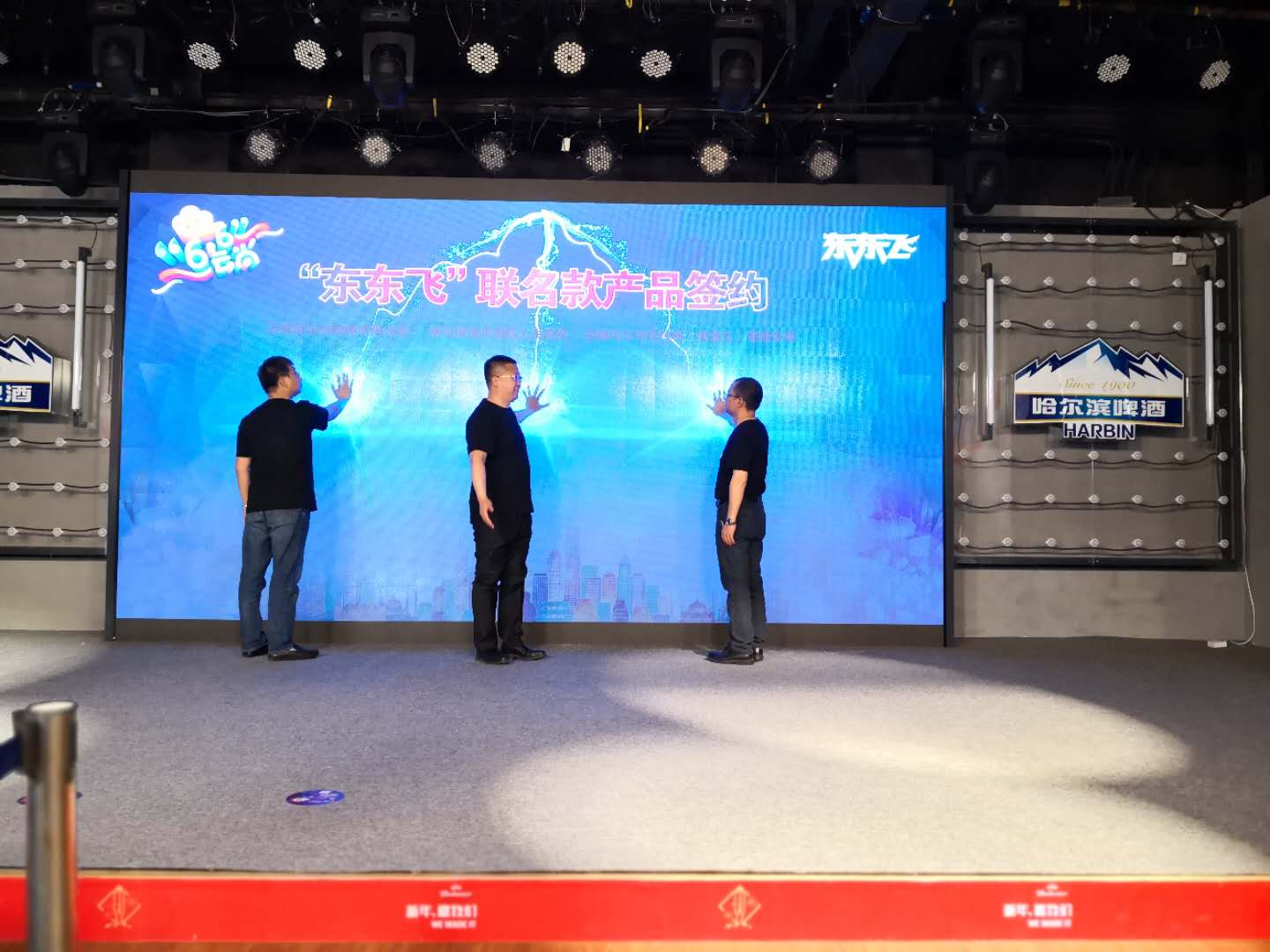 「東東飛」動漫形象發佈後,「6·6雲尚」首屆電商節開幕。百威亞太控股有限公司東北事業部黑龍江省級總監於春宏,哈經開區管委會主任、平房區政府區長宋博岩,中糧可口可樂飲料(黑龍江)有限公司總經理石偉永簽署了「東東飛」、哈爾濱啤酒、可口可樂聯名款協議,1000套聯名款產品現場秒殺。哈經開區管委會主任、平房區政府區長宋博岩,平房區委常委、宣傳部長王毓琢分別作為好貨推薦官為平房片區企業名優產品做產品推介,與廣大網友現場互動。十餘家近三十種食品產品通過「大手拉小手」等形式進行集中展示,體現出新區平房片區號稱「哈爾濱後廚房」的魅力。