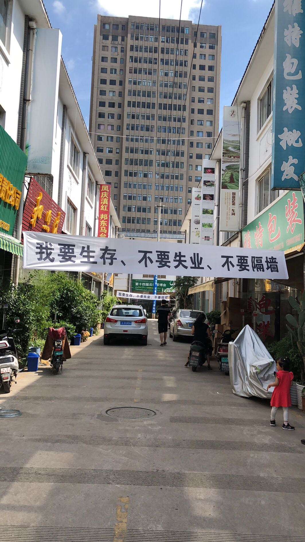 【香港商報網訊】「我要生存、不要失業、不要隔牆」一條條橫幅出現在雲南康樂茶文化城(以下簡稱康樂)三期。6月5日,記者前往茶城,看到橫幅已被清除。據了解,是因為茶城三期商戶的管理者昆明晨力商貿有限公司(以下簡稱晨力)與房東雲南蘭緣商貿有限公司(以下簡稱蘭緣)租賃合同到期,續租事宜協商未果,晨力告知蘭緣將於6月2日在一期與三期界限上砌磚牆作為分隔。