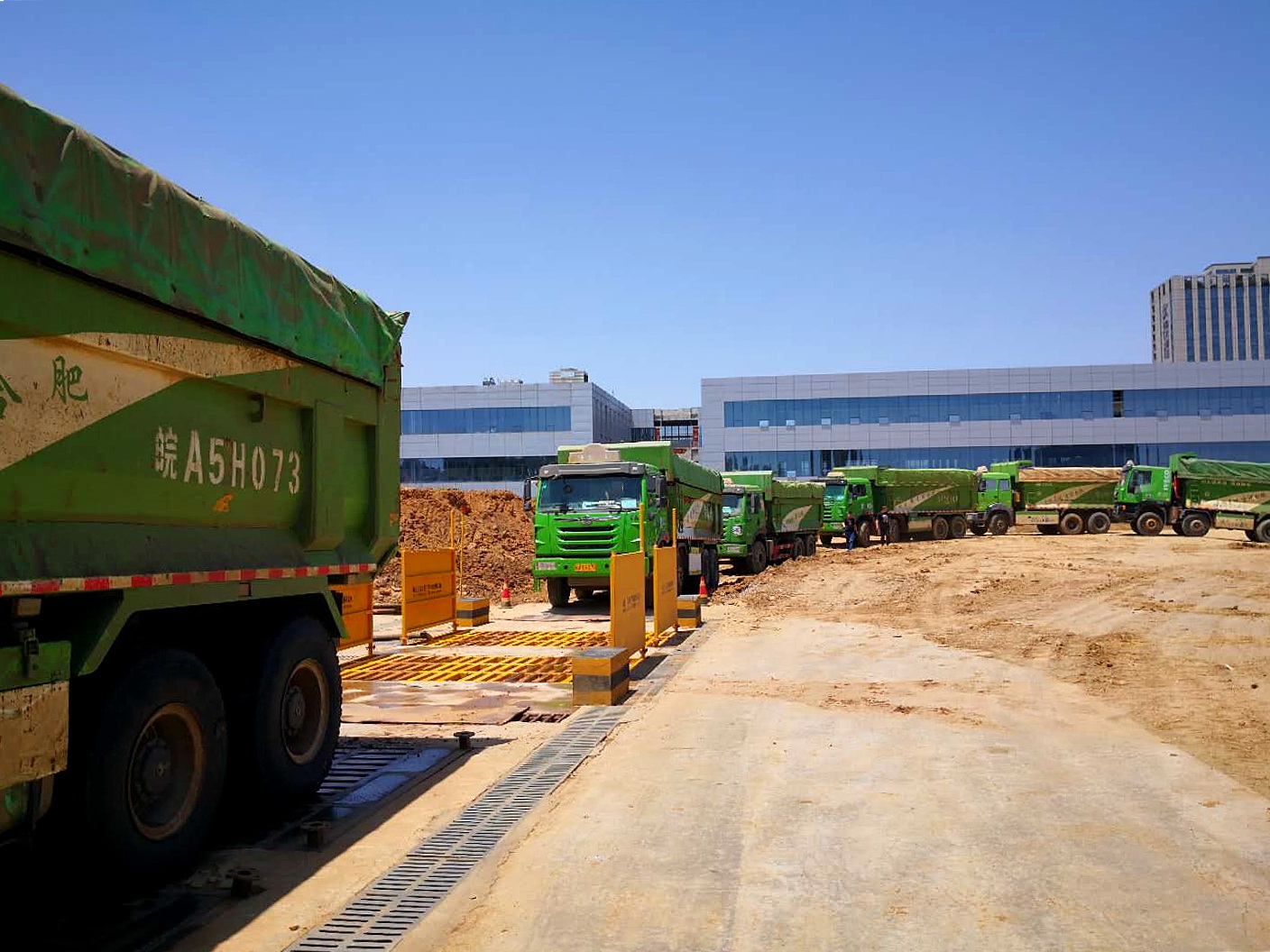 場地土方平整涉及大量渣土運輸工作,施工揚塵、道路污染等環保問題不容忽視。在推進企業用地土方平整過程中,合肥高新區堅持快速建設與文明施工同步抓、不放鬆,注重加強環境保護,實施施法出土作業,努力將出土揚塵抑制到最小程度。