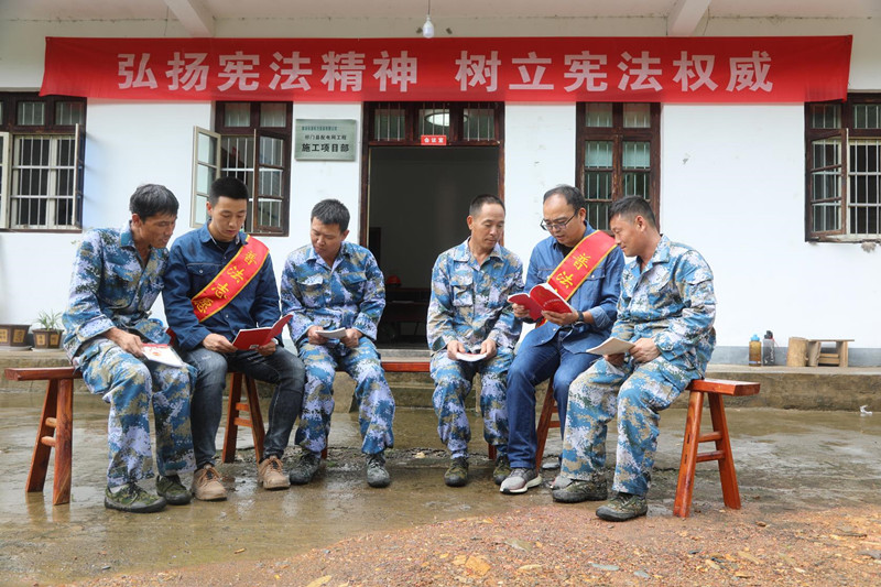 【香港商報網訊】連日來,安徽黃山市祁門縣供電公司普法宣傳志願者深入原水電供區電網改造施工项目部駐地,開展普法宣傳活動,將憲法、電力法等法律知識送到施工一線和農戶家中。