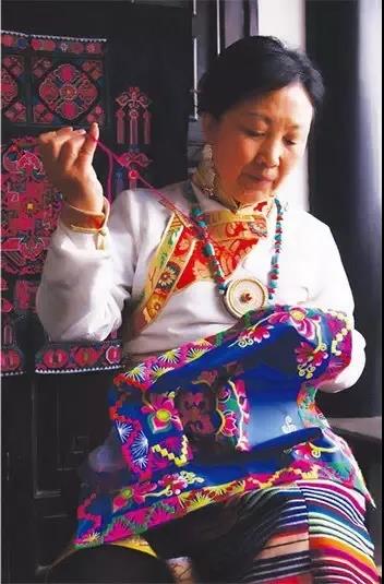 國家級非物質文化遺產藏族編織挑花刺繡傳承人楊華珍(圖源/華珍藏羌文化博物館)