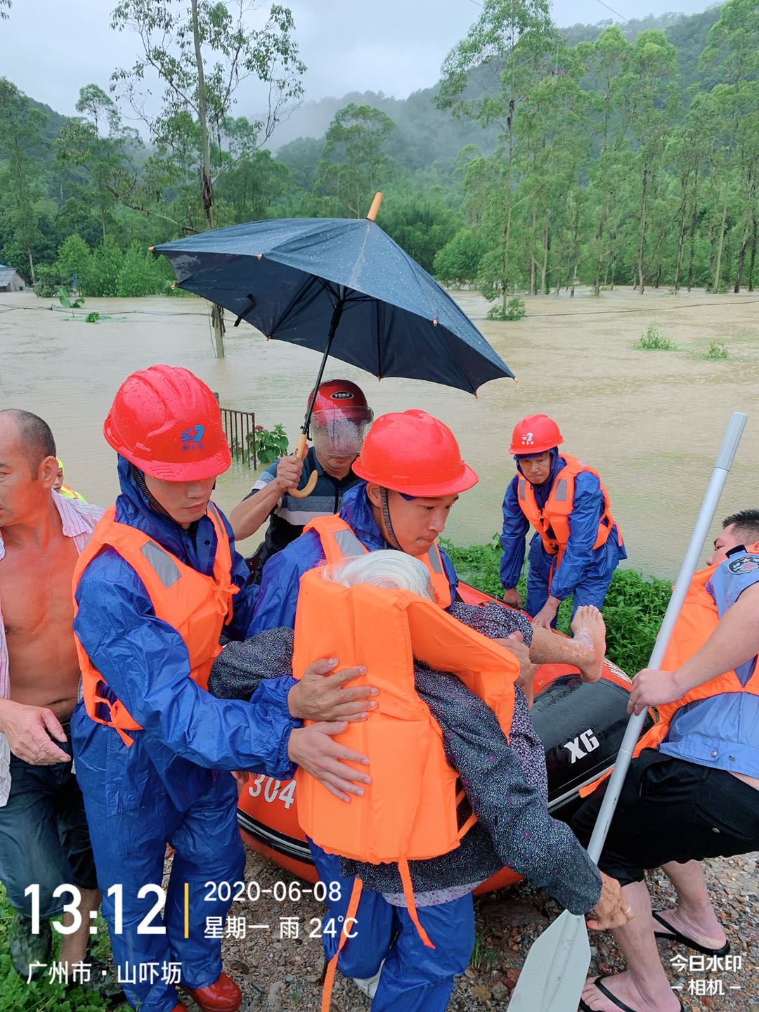 【香港商報網訊】記者從廣州市水務局獲悉,6月7日至8日廣州市增城區普降大暴雨、局部特大暴雨,全區平均面雨量為139.2毫米,其中最大累積雨量為增城區正果鎮何屋村384.2毫米,其次為派潭鎮301.7毫米。增江河上游的惠州龍門縣錄得最大雨量883.9毫米,受上游強降雨影響,增江河水位暴漲,9日3時麒麟咀站最高水位10.66米,超警戒水位2.16米(警戒水位:8.50米)最大流量3320立方米每秒,增江洪水位達二十年一遇。增城區水務局根據區三防指揮部響應要求,嚴密部署保障防洪搶險救災工作,全力確保人民群眾生命財產安全。 截至6月9日11時00分,增城市累計出動人員約623人次、衝鋒舟2艘、橡皮艇5艘、龍吸水9台次、搶險車輛75輛次、水泵機組40台次、照明設備1套趕赴現場,轉移群眾162人。