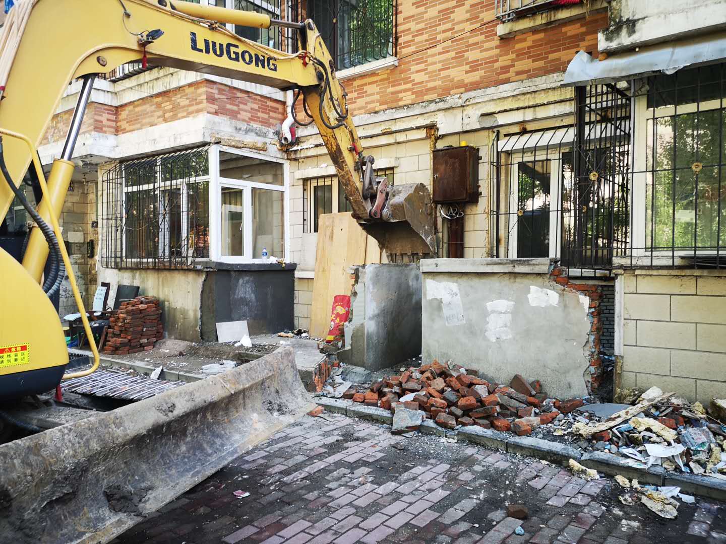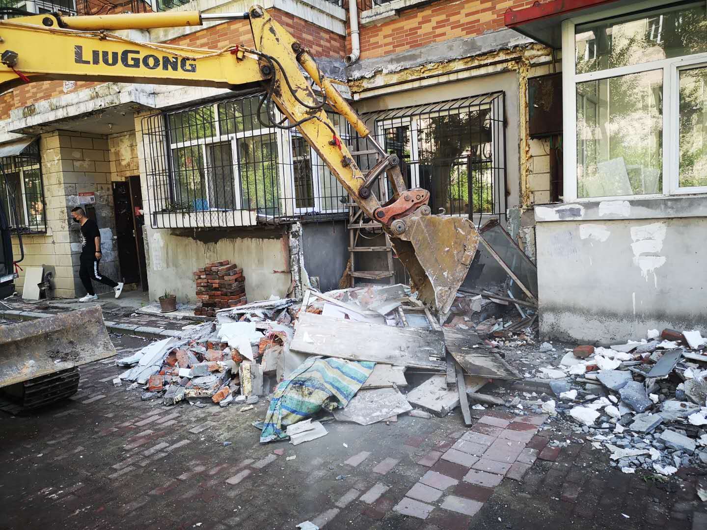 記者在現場看到,這裡的違法建設大多是依附樓體、消防通道搭建的門斗和擴建的陽台,與居民的住宅連為一體,已經成為居民生活空間的一部分。據現場執法人員介紹,在對這些違法建設確認並下達限期拆除公告後,個別居民採取觀望的態度,以種種理由拖延履行自拆義務。街道辦事處和社區工作人員考慮到特殊時期的工作需要,為方便與居民溝通,主動建立了拆違工作溝通群,不僅將拆違工作政策、信息和進展及時在群里公布,而且將工作人員的聯繫電話也發佈在信息群里。居民有什麼問題,可以隨時和工作人員進行溝通,也可隨時撥打電話諮詢拆違工作事宜,建立了政府與居民良好的溝通橋樑。極大地消除了居民的顧慮,促進居民積極自拆,推動整體拆違工作進程。