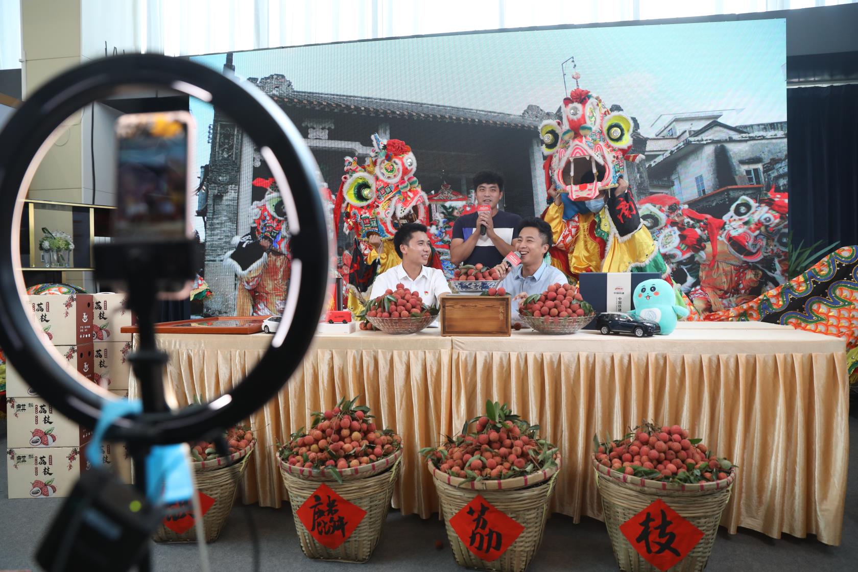 據介紹,黃閣鎮今年的荔枝產量約100萬斤,品種主要為「桂味」「妃子笑」「糯米糍」等,肉厚核小、清脆爽口、鮮甜味香,當地人稱為「麒麟荔枝」。目前上市價格大約在12元一斤,銷售期集中在6月中下旬。在直播中,不少企業紛紛進入直播間,現場購買荔枝等農產品。
