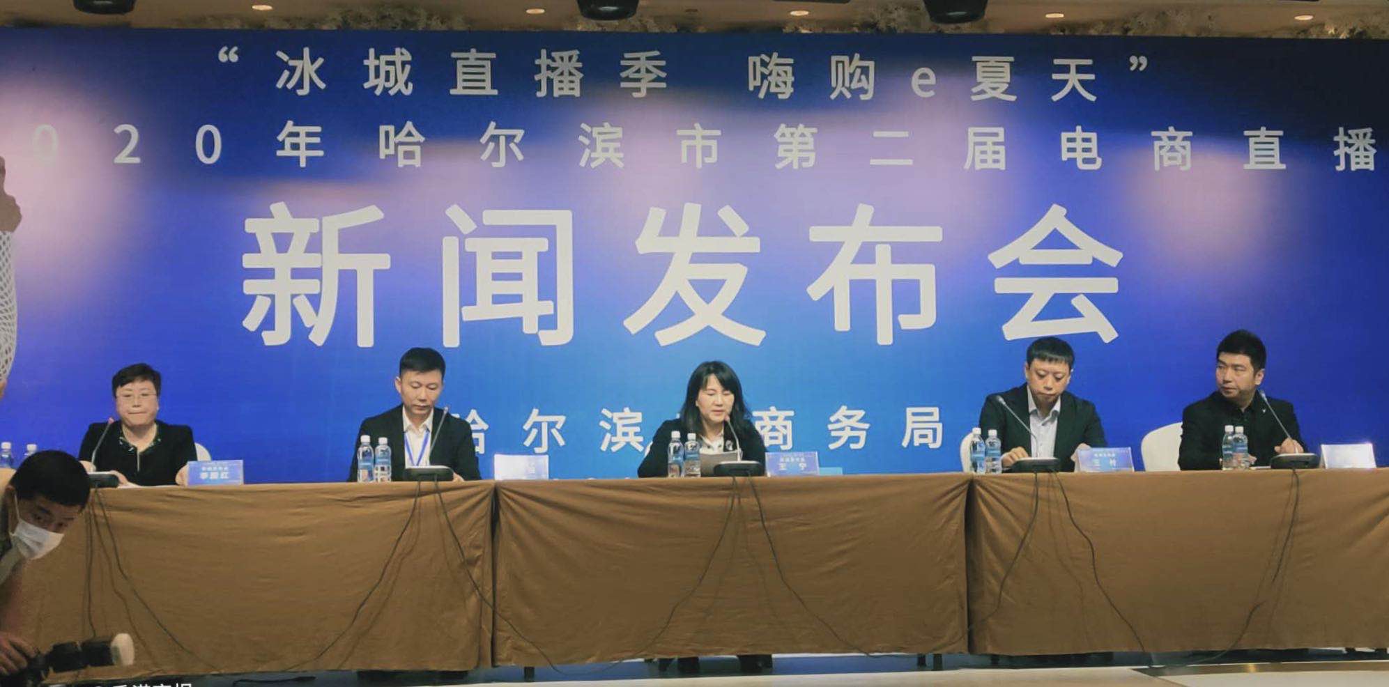 哈爾濱市商務局有關領導介紹了第二屆電商直播節活動的有關情況,並與活動承辦單位哈爾濱中關村孵化器、京彩時光互聯網發展有限公司、哈爾濱電子商務公司、哈西萬達公司以及贊助商MCN機構代表分別回答了記者提出的相關問題。