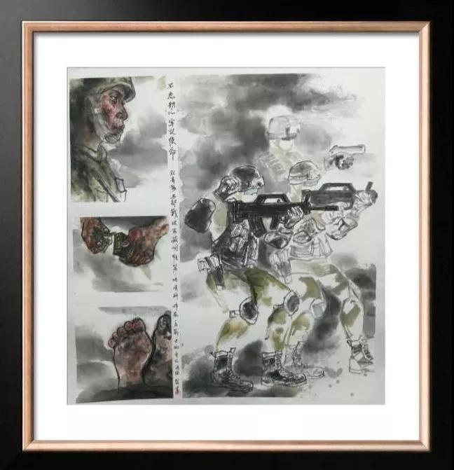 本次展覽共計展示軍旅題材國畫作品20餘幅,由藝術與設計學院國畫專業曹國強團隊精心創作,號召高校青年積極投身國防,歷練自己的品格,為實現中國夢、強軍夢貢獻力量。