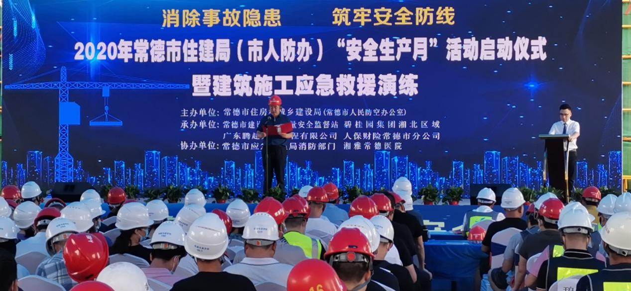此次活動由常德市住建局(市人防辦)主辦,常德市建設工程質量安全監督站、人保財險常德市分公司、碧桂園集團湘北區域、廣東騰越建築工程有限公司承辦。活動旨在落實中央關於「應急處置能力是國家治理能力的重要組成部分」的總要求,進一步「消除事故隱患,築牢安全防線」,加強政企應急預案銜接和常態化演練,檢驗落實施工企業及項目部應急預案的可操作性,提高施工隊伍應急能力,普及應急管理知識。