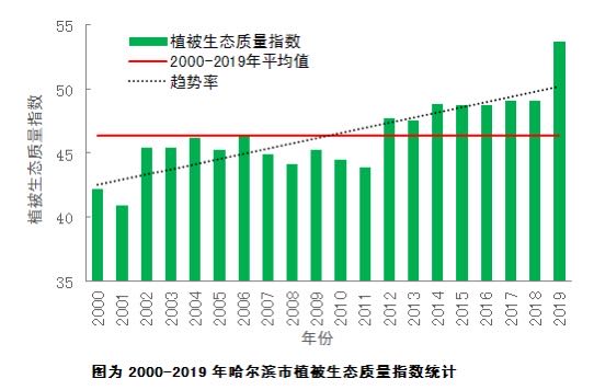 【香港商報網訊】近日,哈爾濱市氣象局在東北衛星氣象數據中心的支持下組織氣象專家利用長序列氣象衛星遙感數據,對哈爾濱市近20年植被生態質量進行監測評估,結果表明:從2000年至2019年,全市植被生態質量顯著提高,自2012年起,植被生態質量指數均超過近20年平均值,2019年創近20年來最優,其中尚志市、五常市和通河縣植被生態質量位列全市區縣(市)前三。哈爾濱市生態文明建設成效顯著,市民生態環境獲得感逐年增強。各區、縣(市)政府持續加大綠化和生態保護力度,讓哈爾濱天更藍、水更清、山更綠。