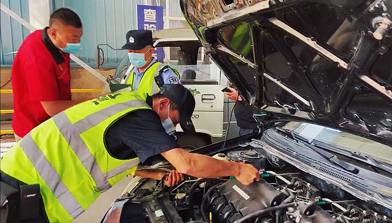 上午十點,汽車查驗點停放的車輛不少,但排隊有序。車管所民警在車輛停放處開始了新車查驗工作。兩名查驗員逐一打開車輛引擎蓋、車門、後備箱,對車輛外觀、發動機型號、車輛品牌、車輛識別代碼、核載人數等關鍵指標進行仔細比對審核。一名查驗員表示,這個步驟其實就是給新車做「體檢」,在領牌照之前新車必須過驗車關。「車輛沒問題,合格!」三分鐘後,查驗完成,查驗員在機動車查驗記錄表上逐項記錄。據了解,目前,查驗點每天約查驗車輛150台,周一周二車輛較多。
