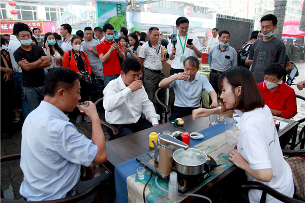 黃山市副市長張正竹(左2)現場與茶葉專家和群眾一起品茗話茶