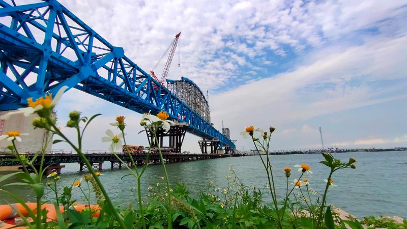 【香港商報網訊】記者 李苑立 報導:繼去年順利完成主橋合龍後,南沙港鐵路洪奇瀝水道特大橋22日陸續啓動鋼桁梁柔性拱的架設。據中鐵六局廣州公司介紹,洪奇瀝水道特大橋爲鋼桁梁柔性拱橋,跨徑360米,是國內同類型橋梁最大跨度,同時也是亞洲同類型最大跨度橋梁,爲南沙港鐵路全線控制性工程。