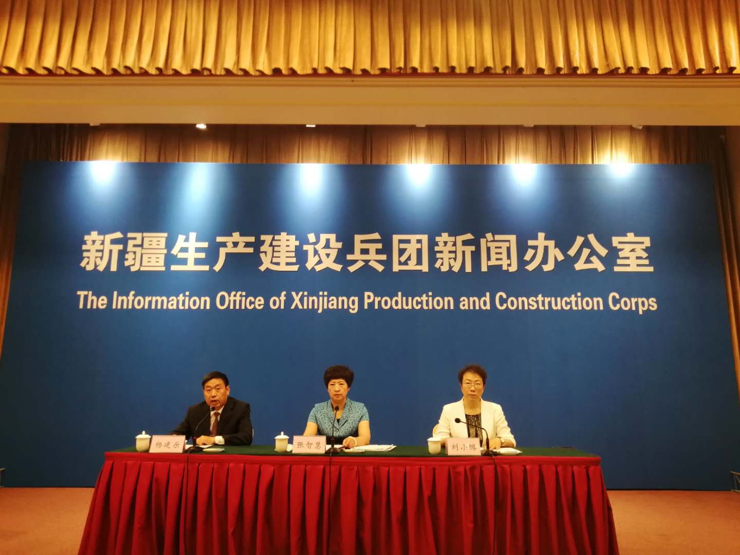 發佈會現場。兵團婦聯黨組書記、主席張智慧(中);兵團婦聯黨組成員、副主席劉小璐(右);兵團黨委宣傳部副部長楊建樂(左)