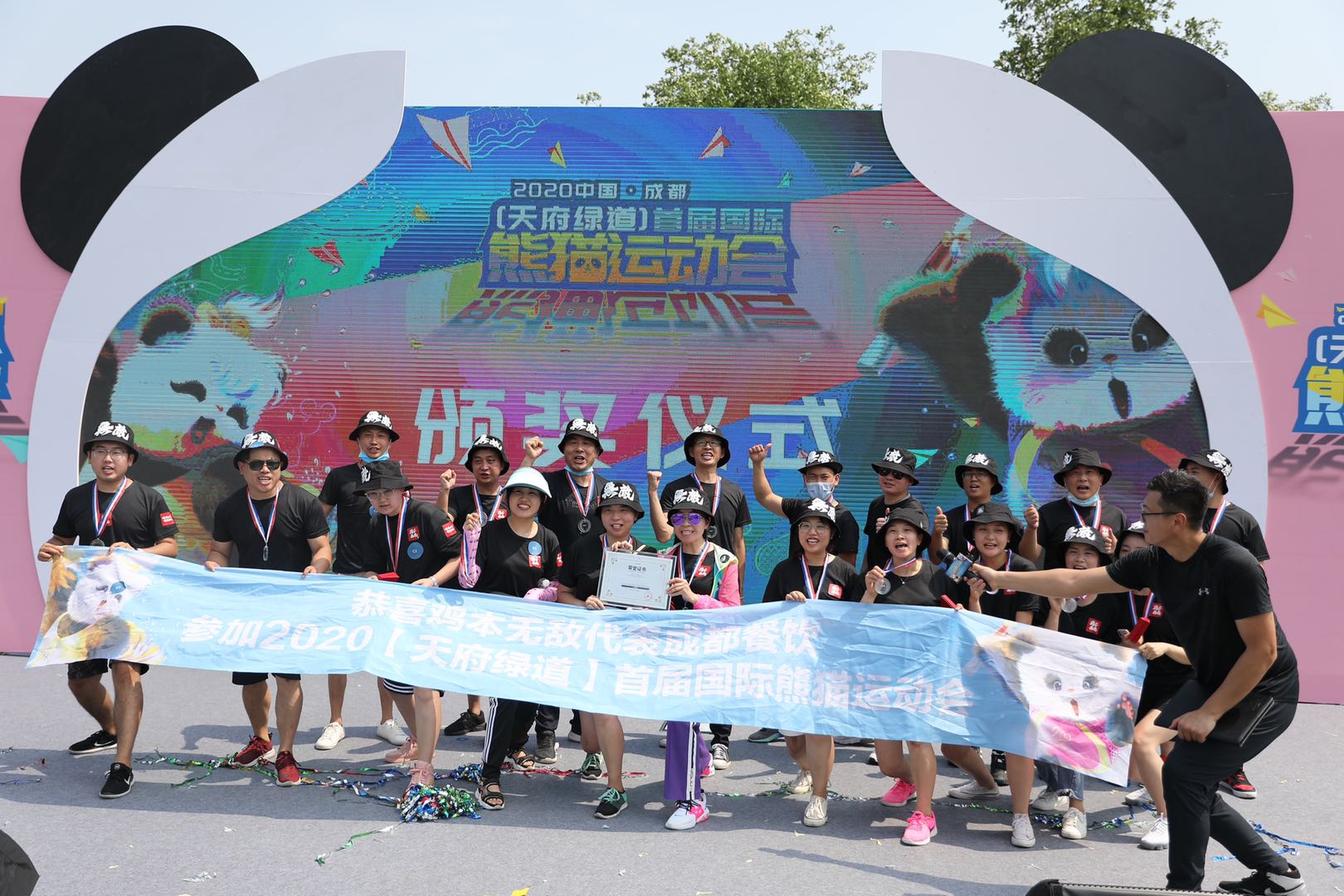 25日活動現場,主辦方之一的天府綠道相關負責人介紹道,25日的熊貓運動會分為上下午兩場,參加上午場比賽的共有10支參賽隊伍累計200名「熊貓」運動員。從參賽隊伍構成來看,本次運動會廣泛聚合了成都伊藤洋華堂、紅旗連鎖、成都蓉城雞本無敵餐飲管理有限公司、中建三局成都分公司,以及國際友人等各行各業代表。無論老成都還是新蓉漂,無論在蓉師生抑或外企員工,均被趣味橫生的熊貓運動會吸引而來。