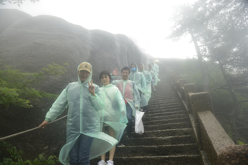 當天,安徽援鄂醫療隊隊員代表近30人,冒著淅瀝小雨,遊覽了黃山玉屏、天海、北海景區。儘管天公不作美,但隊員們仍然很開心。皖南醫學院附屬弋磯山醫院護理部主任張先翠說:“黃山是我魂牽夢繞的一個地方,我來黃山已經不下10次了。黃山真的很美,不同的季節、不同的天氣來都有不一樣的感受。黃山是我們中國的象徵,是安徽最亮麗的名片,所以我這次還是選擇來黃山這條線路。”