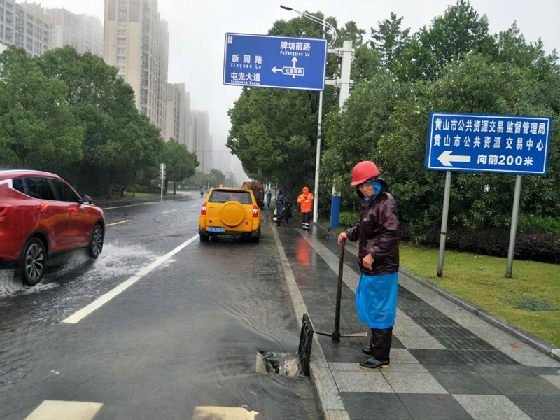 屯溪區城管執法局市政園林工作者組織40名精幹力量對重點易積水道路、山場和公園廣場開展不間斷巡查,嚴密排查道路積水、樹木倒伏以及山場地質災害等安全隱患發生,對部分積水嚴重的道路安排人員打開雨水篦、雨水井井蓋加速排水,並專人值守,保障道路安全暢通。端午節期間每日共出動巡查車輛5輛,排除20餘處道路積水問題,確保節日期間中心城區市政園林設施安全,與此同時,屯溪區城市管理執法局派出隊員,採取定點值守和流動巡查相結合的方式加強監管,並對釣魚捕魚和沿江打撈等行為進行強制勸離,最大限度確保市民的人身安全。