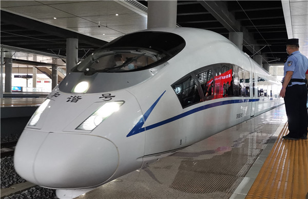 商合杭高鐵蕪湖段開通運營,蕪湖至合肥南和諧號G9396首發(柏永/攝)