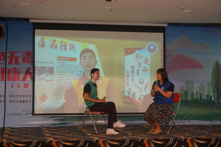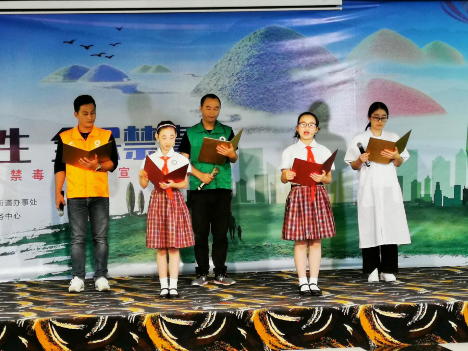 活動現場,詩朗誦《拒毒品,築防線,共創美好龍華》通過禁毒社工、醫護人員、朋輩輔導員、學生代表等精彩的演繹,進一步強化了群眾識毒、防毒和拒毒意識,深刻揭露了毒品危害、涉毒違法犯罪手段,幫助群眾認清毒品對個人、家庭和社會帶來的危害。