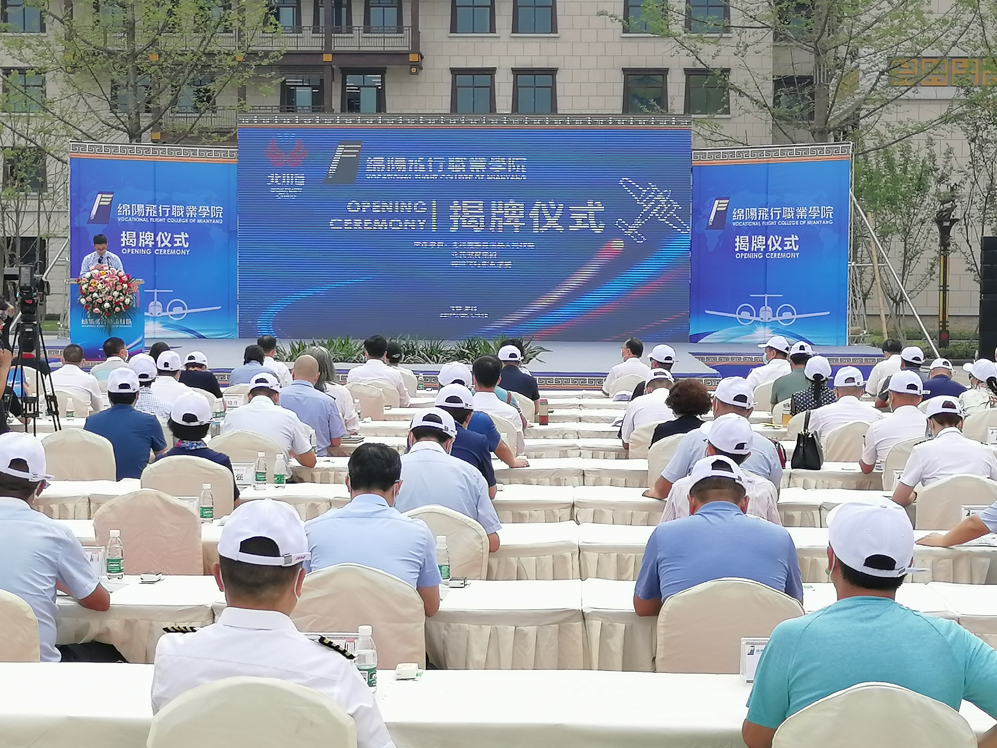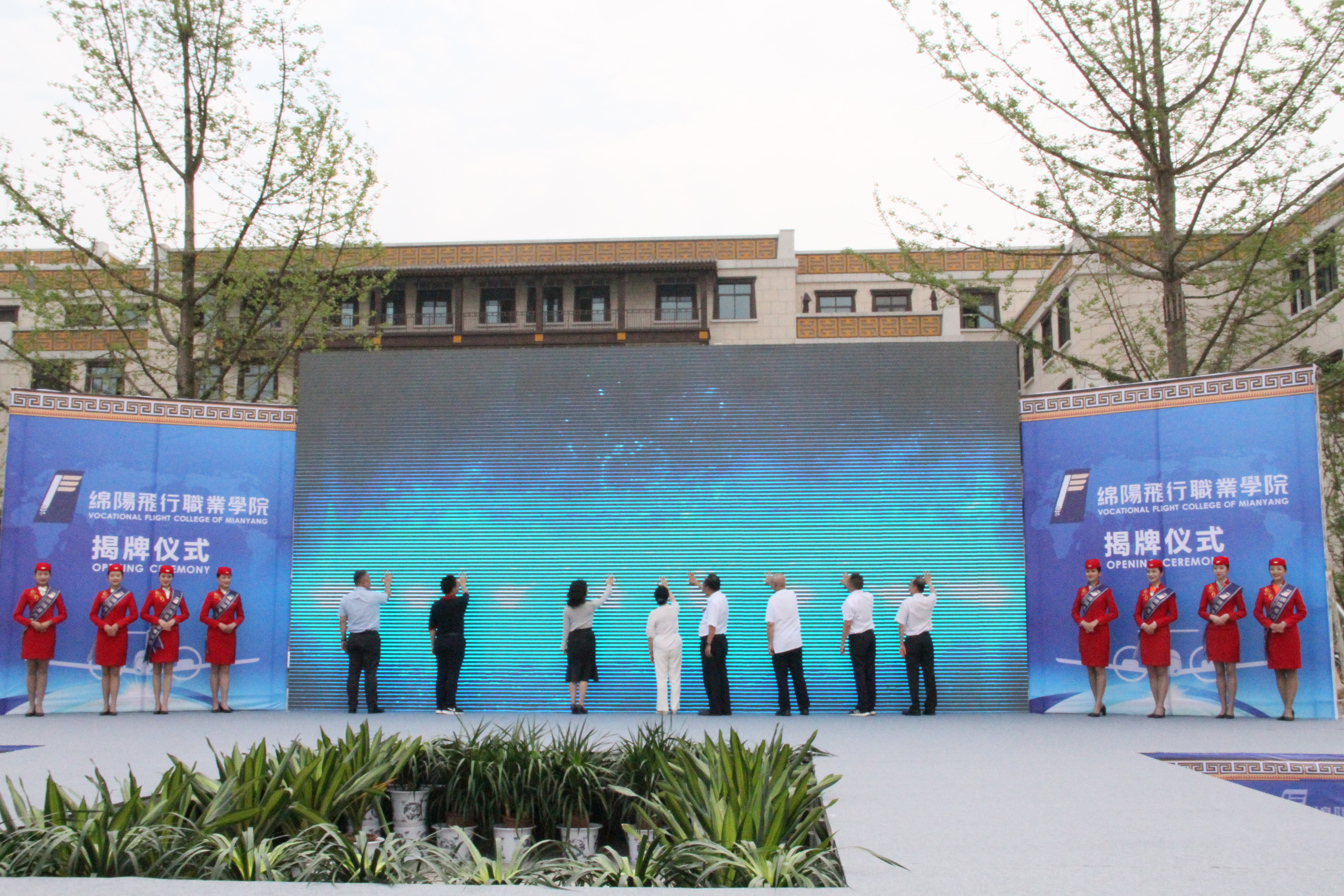當天,北川羌族自治縣委副書記韓忠明主持揭牌儀式,四川省人民政府教育督學委員會專職副主任、教育廳總督學傅明宣讀了四川省教育廳《關於設立綿陽飛行職業學院的通知》,綿陽飛行職業學院院長吳土星攜手與會嘉賓代表一起觸動揭牌儀式大屏,綿陽飛行職業學院門口紅綢同步掀啟。