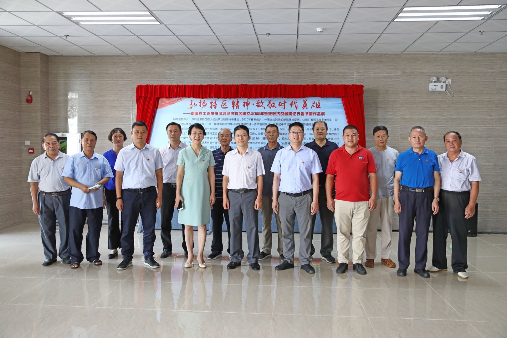 【香港商報網訊】為進一步弘揚特區精神,傳遞同心抗疫精神力量,6月29日,「弘揚特區精神,致敬時代英雄——南澳黨工委慶祝深圳經濟特區建立40周年暨致敬抗疫最美逆行者主題書畫作品展」在深圳市大鵬新區南澳辦事處一樓大廳揭幕。