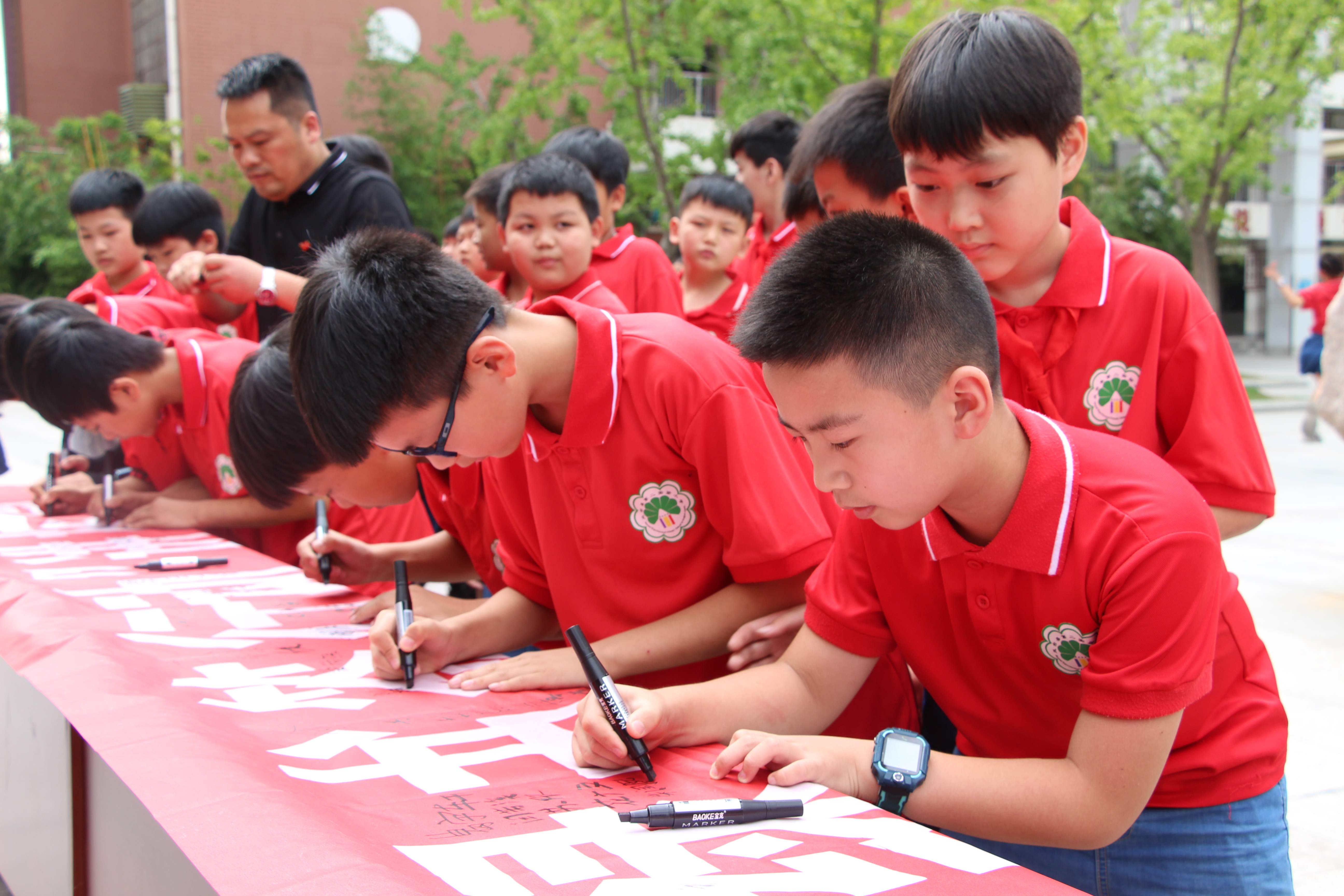 【香港商報網訊】6月30日,安徽省淮南市鳳台縣2020「綠書籤行動」進校園活動在該縣第二實驗小學舉行,得到了全校師生的積極響應。大家紛紛拿起筆,在印有「護助少年兒童健康成長,遠離和抵制有害出版物」的橫幅上鄭重簽上了自己的名字,表達了他們尊重知識、尊重創意、拒絕盜版的心聲。