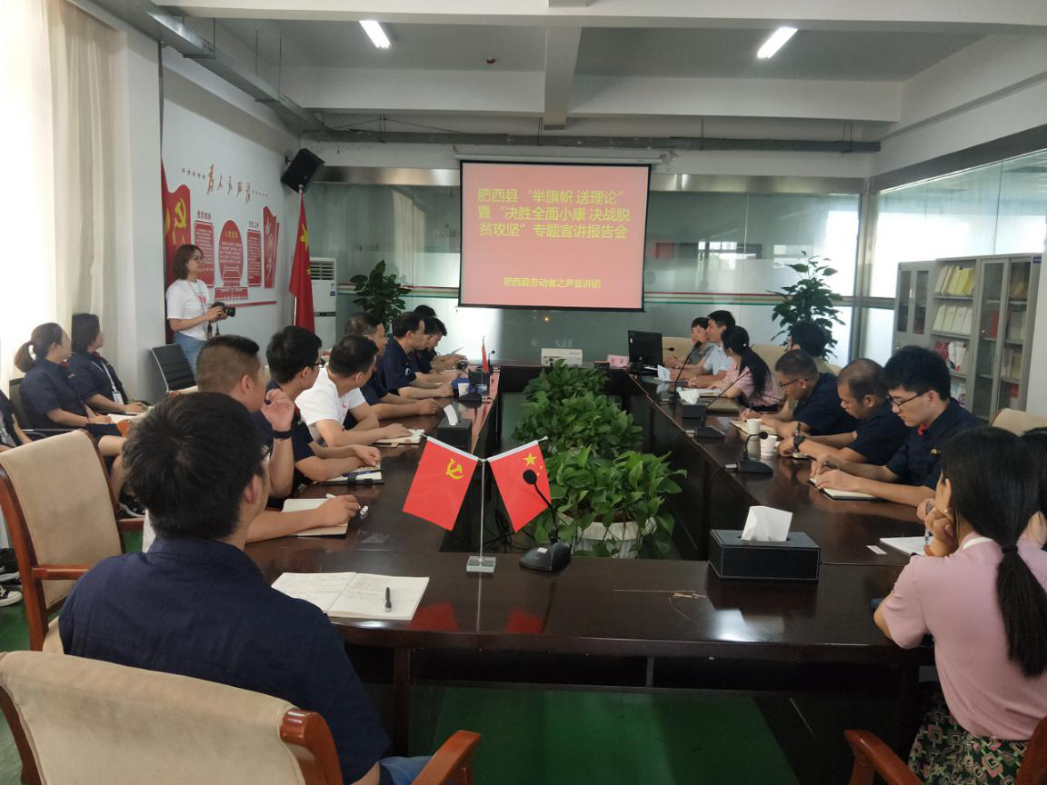 【香港商報網訊】「請大家思考下面三個問題,什麼是全面小康?為什麼要共同富裕?如何理解三大攻堅戰之——脫貧攻堅?」6月30日下午,安徽省合肥柏堰科技園波林新材料有限公司的會議室里氣氛熱烈,職工們興緻勃勃地聆聽了肥西縣勞動者之聲宣講團「決勝全面小康 決戰脫貧攻堅」專題宣講報告會。