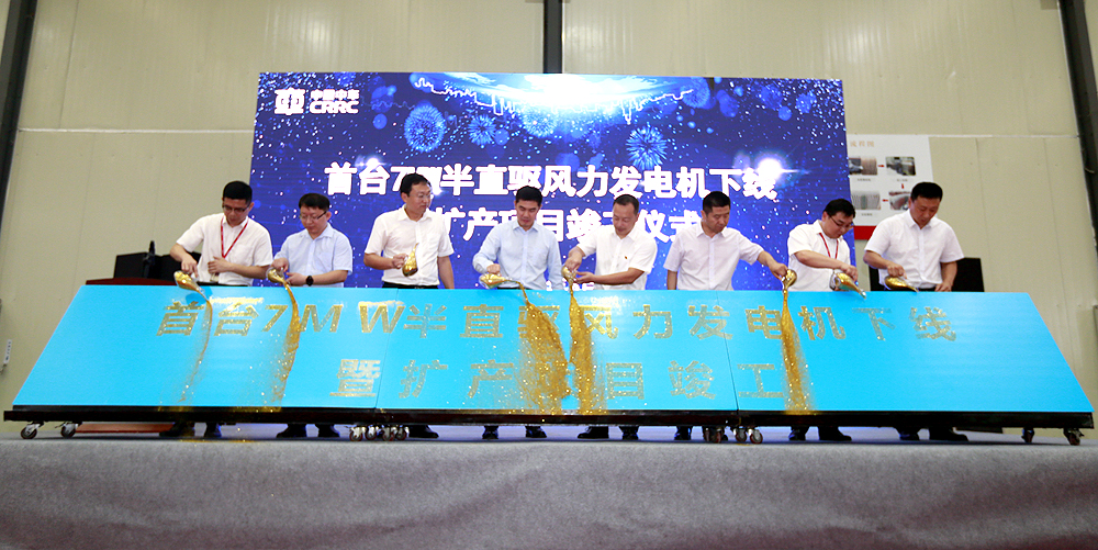 【香港商報網訊】6月30日,中車株洲電機公司在湖南株洲舉行首台7MW半直驅風力發電機下線暨擴產項目竣工儀式。該項目是中車株洲電機公司在風電產業「搶裝潮」中,打破產能缺口的「僵局」,滿足市場需求的重大舉措。