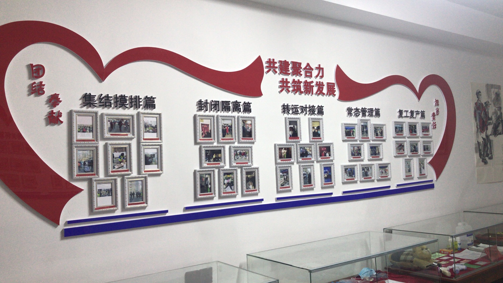 面對突如其來的新冠疫情,香坊區建築街道的廣大機關幹部及社區工作者以「召必回,戰必勝」的大無畏精神,構築起守護轄區六萬餘名群眾生命健康和安全的第一道防線。他們披荊斬棘,集結摸排,一聲令下,全員到崗,不到6天的時間排查了6萬餘人。封閉隔離,僅用二天的時間設置完成22個卡口和小區全封閉。他們衝鋒陷陣,轉運對接,24小時,閉環管控,轉運途中,有他們不顧疲憊奔波的身影,993戶,1688人居家隔離;放棄休假,創新庭院管理,硬核封閉讓創新夯實常態化管理。目前疫情防控工作已經取得階段性勝利,為了讓所有參與疫情阻擊戰的廣大幹部和社區工作者以及眾多社區群眾記住牢記這段抗疫歷史,弘揚抗疫精神,鼓舞轄區廣大幹部群眾以實際行動為實現香坊區全面振興全方位振興做出更大貢獻,建築街道在林園社區創建了這處疫情防控博物館。博物館使用面積20平方米,搜集了轄區內在參與抗疫阻擊戰中的工作人員的軍大衣、袖標、一次性手套等70件實物和珍貴的抗疫照片73幅。
