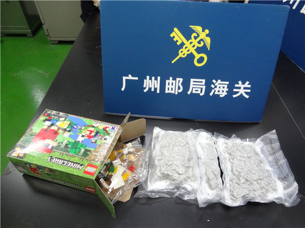 據了解,6月2日,廣州海關所屬廣州郵局海關關員在對進境郵件實施監管時,發現1件由境外寄往廣東廣州、申報為「TOY」的郵件X光機過機圖像顯示異常。經開箱查驗發現郵件內為1個樂高玩具包裝盒,拆開包裝盒後,赫然發現裏面除了1袋樂高玩具外,還裝有3袋真空包裝植物產品,外觀疑似大麻花。經毒品試劑板快速檢測,該批植物產品呈大麻陽性反應,毛重達558克。