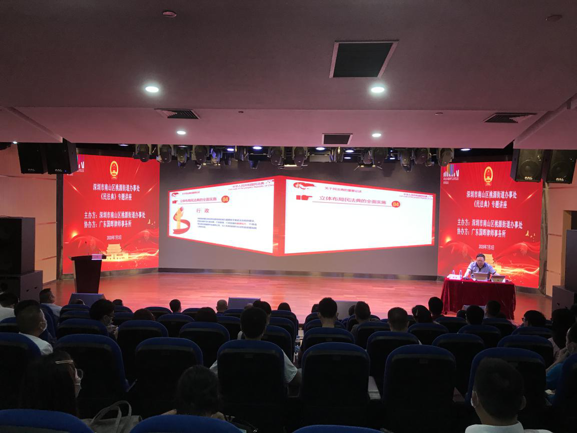 【香港商報網訊】日前,為了掀起《民法典》的宣傳熱潮,深圳市南山區桃源街道組織開展《民法典》專題講座活動,邀請區政府法律顧問、廣東國暉律師事務所謝挺律師講授《民法典》精神要義,進一步加深街道轄區黨員群眾對於《民法典》的認識,讓《民法典》走到群眾身邊、走進群眾心裏。