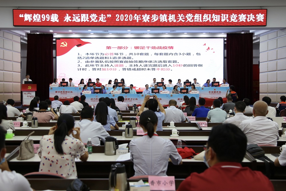 據悉,自本次競答大賽啟動以來,寮步鎮機關黨組織積極響應、踴躍報名,共有46支隊伍參加6月19日的初賽。根據初賽成績總分由高到低排列的比賽規則,寮步醫院、香市中學、市場監督管理分局、稅務分局、香市小學、組織人事辦、住房規劃建設局、應急管理分局、農技中心和社衛中心等前10名黨支部代表隊伍脫穎而出進入決賽。