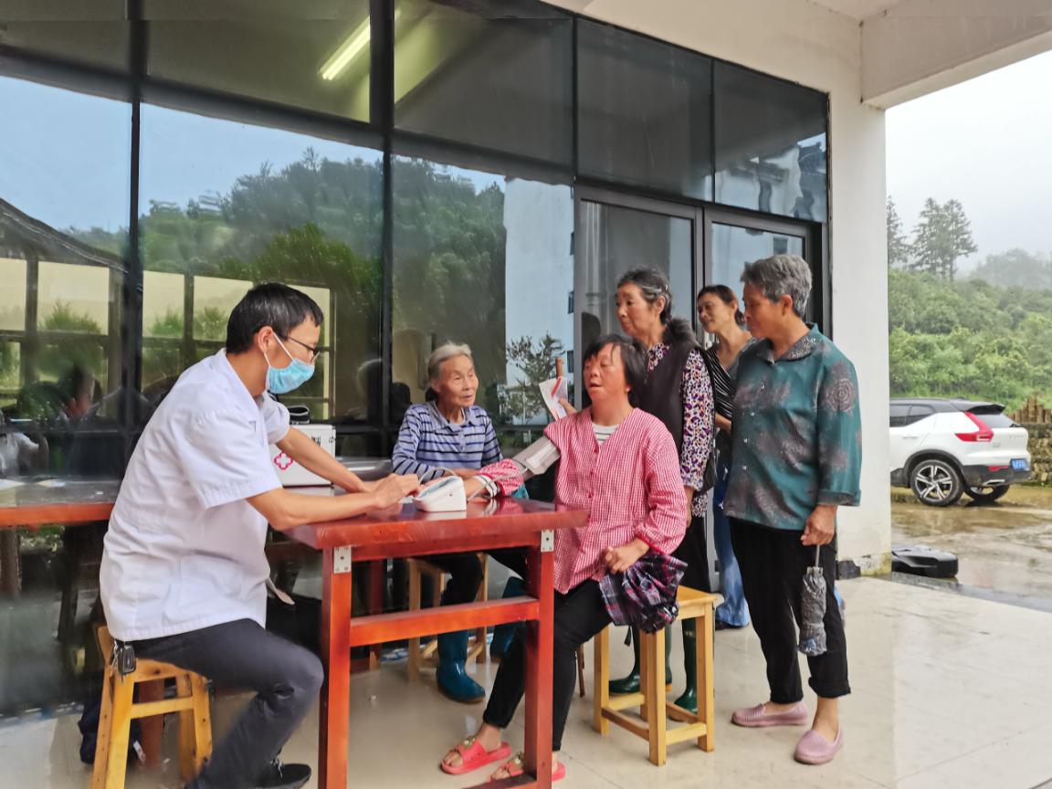 【香港商報網訊】屋外大雨滂沱,屋內暖意融融。7月8日,安徽黄山市徽州區呈坎鎮衛生院醫務人員來到楊幹集中安置點為轉移安置群眾進行免費健康檢查,詳細講解常見疾病預防和治療,通過健康體檢,進一步掌握安置群眾身體健康狀況,為做好汛期疾病預防工作打下了良好基礎。