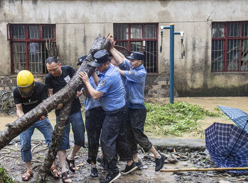 據悉,當天,西遞派出所共接到出警電話12個,處理險情25起,幫助受困群眾100餘人,一抹警務藍在風雨中格外引人注目。